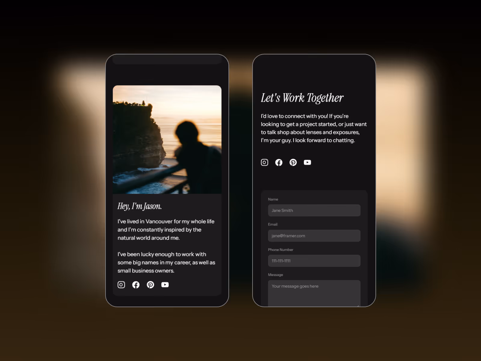 Golden Hour is a powerful one-page Webflow template built for photographers of all kinds — lifestyle, portrait, nature, and beyond. A sleek, modern dark design that puts your work front and center, with smooth galleries, testimonials, and effortless customization to help you book with confidence.
